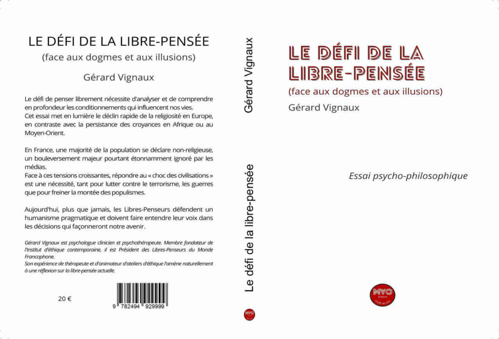 Gérard Vignaux est psychologue clinicien et psychothérapeute. Membre fondateur de l’Institut d’éthique contemporaine, il est Président des Libres-Penseurs du Monde Francophone. Son expérience de thérapeute et d’animateur d’ateliers d’éthique l’amène naturellement à une réflexion sur la libre-pensée actuelle.