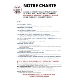 L’adhésion à l’association « Le Bar commun » est obligatoire pour consommer, comme dans tous les bars, cafés et restaurants associatifs.