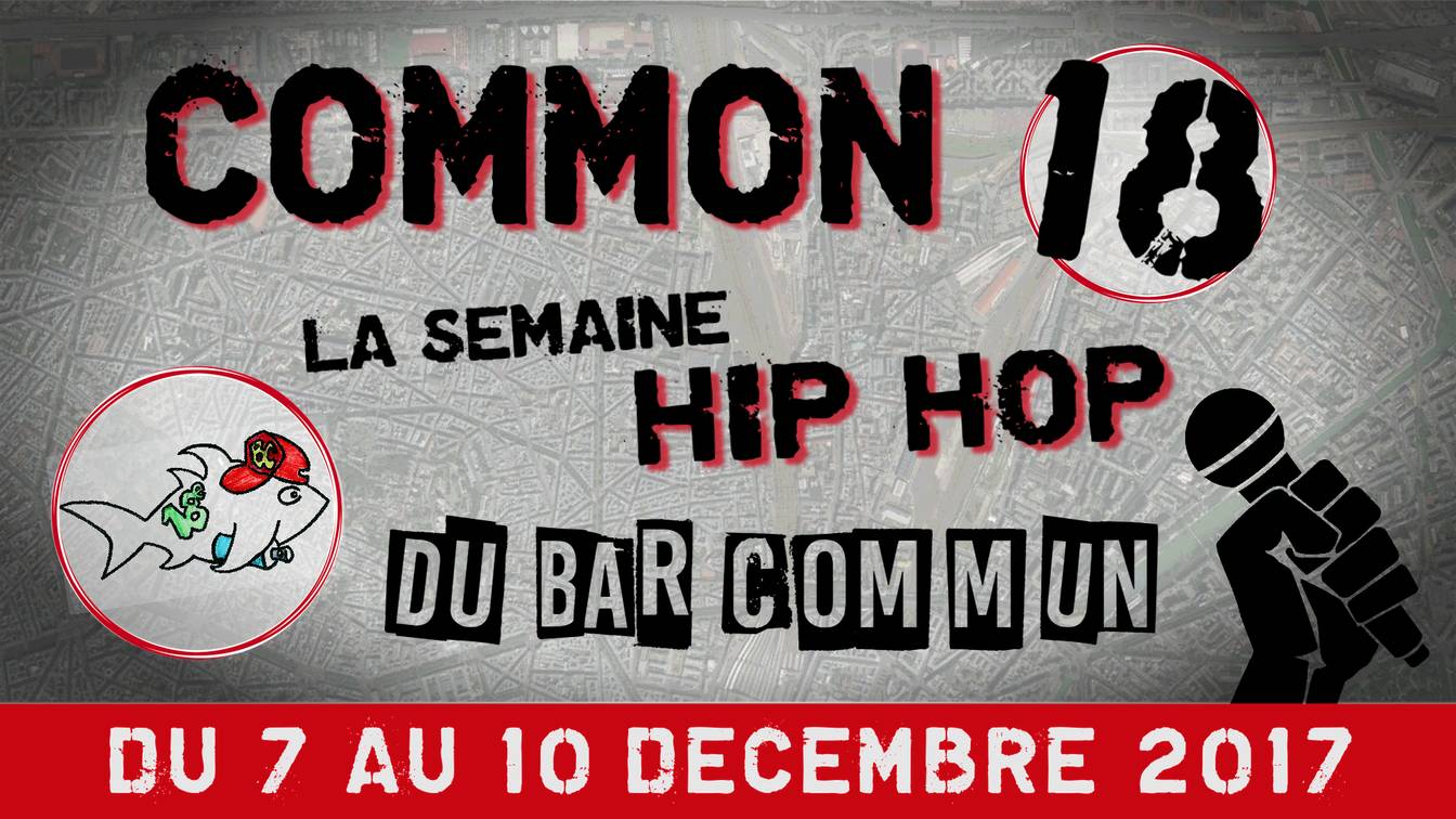 Le Bar Commun, bar de quartier associatif, culturel et citoyen, porté par des bénévoles, et implanté au cœur du quartier Amiraux-Simplon dans le 18ème arrondissement, veut faire entendre les voix et montrer les voies du hip-hop – et notamment du 18ème, sans doute le plus hip hop des arrondissements de Paris, territoire du plus grand mur graffé de France rue Ordener, comme des historiques d’Assassin, de la Scred Connexion, ou encore de Flynt, C.Sen ou Kalash. Nouveau lieu ouvert à tous, qui se veut caisse de résonnance à toutes les énergies créatives et militantes pour fabriquer une contre-société solidaire et festive, le Bar commun ne pouvait que consacrer sa toute première semaine thématique à la culture urbaine la plus inventive et la plus contestataire de ces trois dernières décennies, très implantée localement.