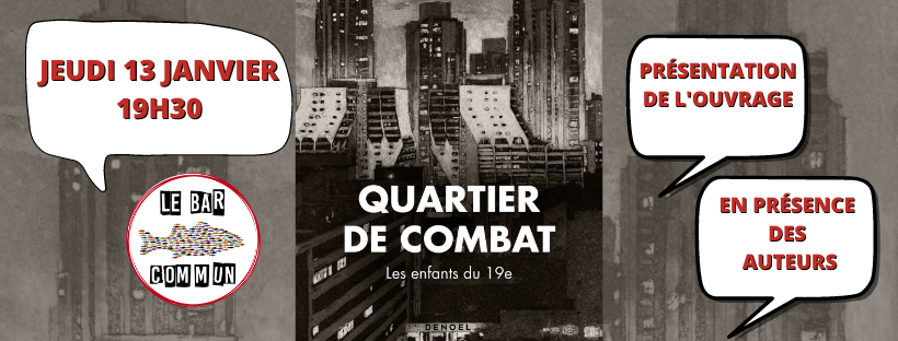 Venez rencontrer les auteurs de Quartier de combat, immersion dans le quotidien d’une zone vive et rageuse où se mêlent détresse, entraide et solidarité, pour une séance de dédicaces au Bar commun