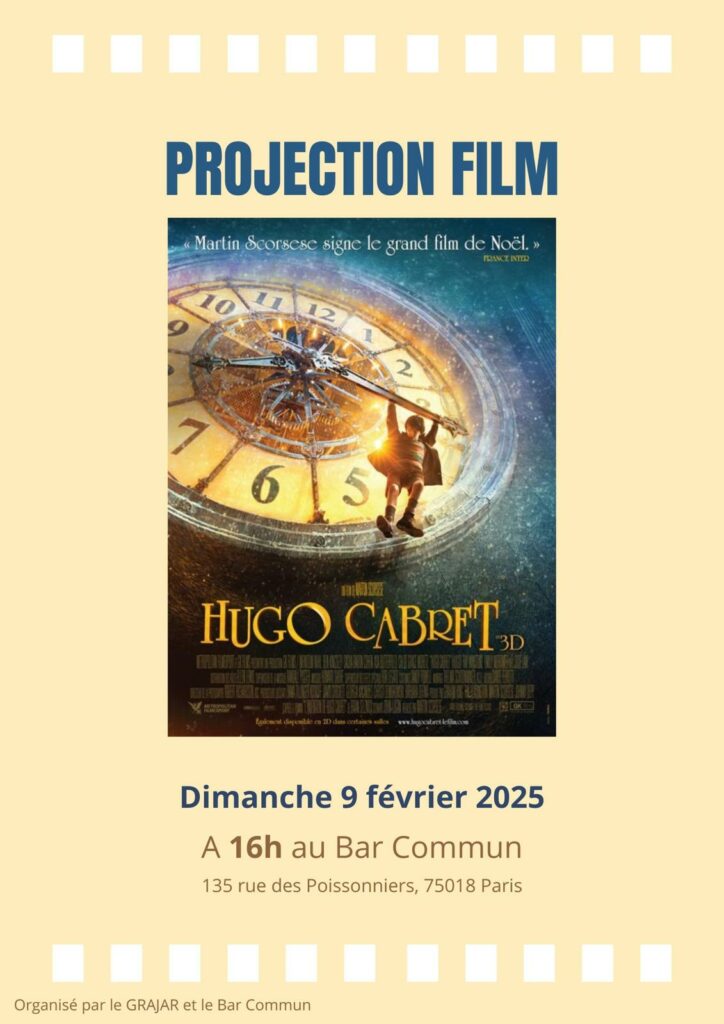 Dimanche 9 février 2025 le Bar Commun et l’association le GRAJAR vous invitent à la projection du film Hugo Cabret de Martin Scorsese à 16h !