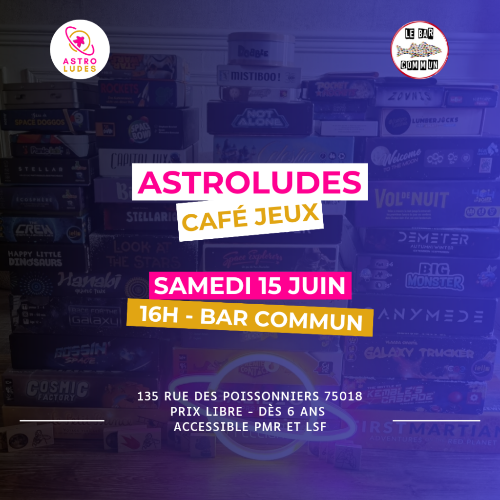 Amoureux de l’espace, curieuses intergalactiques et ludistes cosmiques, accrochez-vous à vos étoiles préférées, car les AstroLudes reviennent au Bar Commun. Chaque mois, nous explorons les confins de l’univers ludique avec des jeux captivants qui vous feront voyager à travers l’astronomie, rencontrer des extraterrestres farfelus, et partir à la découverte de nouvelles frontières dans l’exploration spatiale.