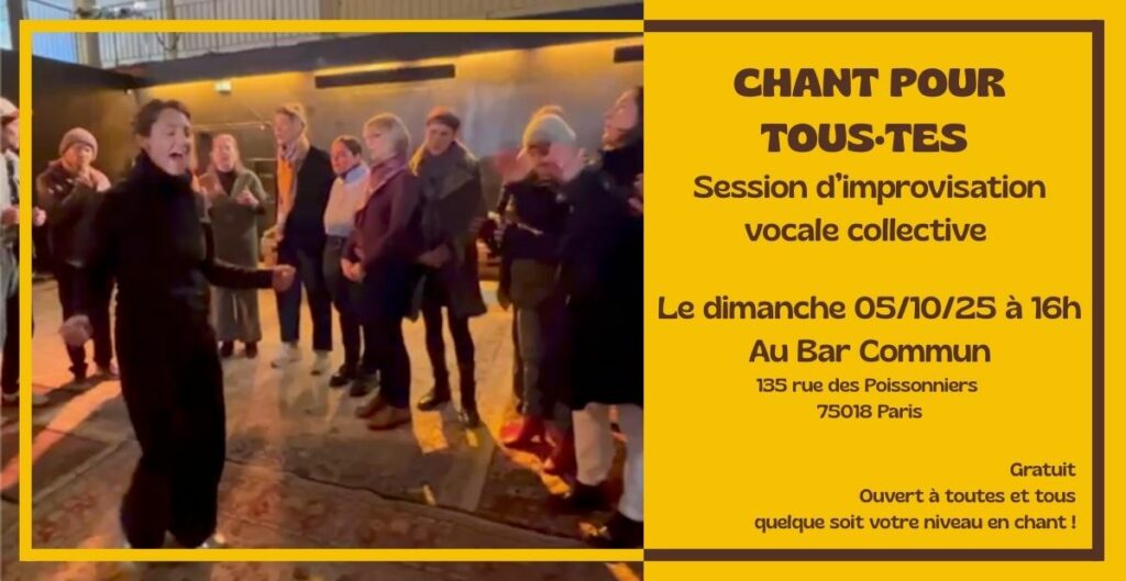 Chant Pour Tous·tes au Bar commun le dimanche 05/10 à 16h : chantons et body-percussionnons ensemble !