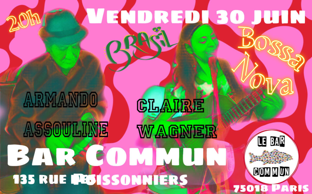 Venez découvrir la voix douce teintée de saudade de claire wagner et sa guitare ainsi que les rythmes syncopés d’Armando Assouline: grand maître des percussions latines !