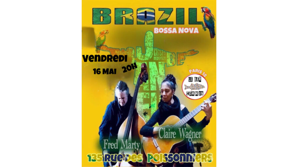 Claire Wagner ( guitare / chant ) et Fred Marty ( stick Bass) revisiteront le répertoire de Tom Jobin, Joâo Gilberto, Marcos Valle, Milton nascimento ect…