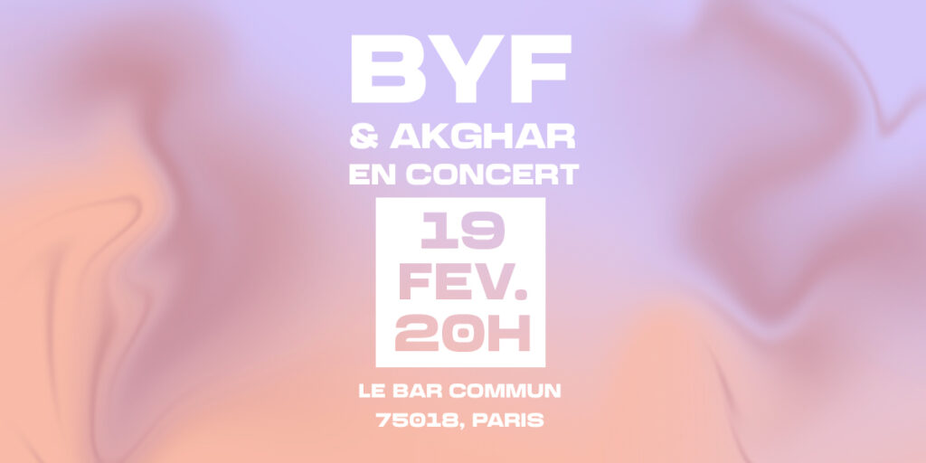 BYF est un duo de rap originaire du Val-d’Oise et de Paris. Le groupe mélange plusieurs styles, ses influences sont loin de se limiter au rap, il puise son inspiration dans d’autres genres musicaux tels que le jazz, le rock, la musique électronique ou classique. Son principal atout est l’adaptation, le duo est habitué à rapper sur n’importe quel type d’instrumentales, il en ressort de leurs chansons un côté unique. Les deux rappeurs racontent au travers de leurs textes leurs expériences personnelles, leurs évolutions, leurs difficultés et surtout leurs visions du monde actuel notamment grâce à leurs nombreuses collaborations avec Akhgar, un rappeur iranien proche du groupe qui accompagne leurs concerts depuis plusieurs années. Actif depuis 2020, le groupe souhaite, à travers diverses scènes, présenter sa musique au plus grand nombre.