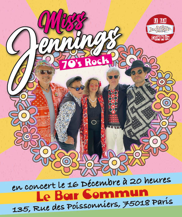 Miss Jennings Music Live est l’histoire d’une amitié qui unit une chanteuse et quatre musiciens autour d’un projet musical : ils se sont connus, il y a 4 ans, et ont décidé naturellement de créer un groupe pour partager leur passion.