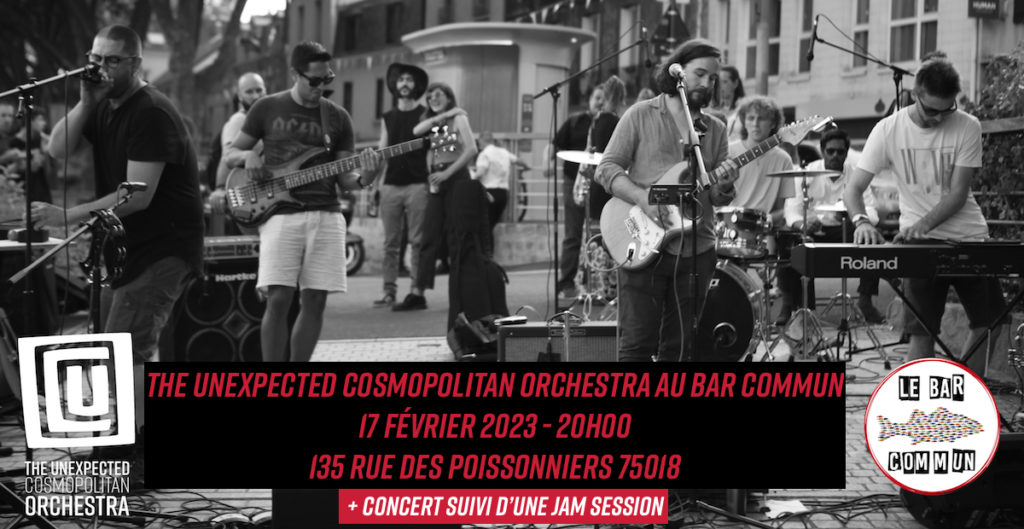 The Unexpected Cosmopolitan Orchestra est un groupe de Seine-Saint-Denis qui se présente sous la forme d’un quintet de Patch Rock, savant mélange de rock prog, de rock psyché, de jazz latin et de pas mal d’autres choses. https://uco93.wordpress.com/