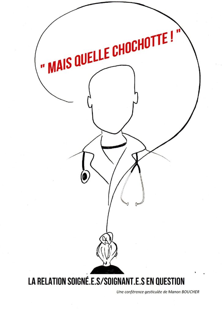 Une conférence gesticulée pour interroger la relation soigné.e.s/soignant.e.s et les rapports de domination qui s’y jouent du point de vue d’une patiente.