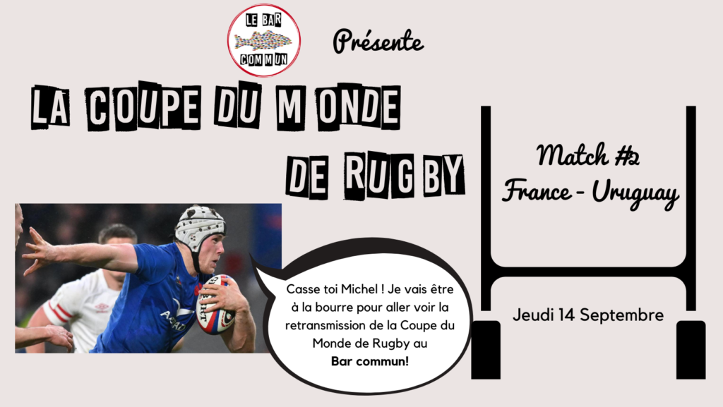 Durant toute la durée de la Coupe du Monde de Rugby, le Bar commun retransmettra les matchs de l’équipe de France, ainsi que les matchs décisifs.