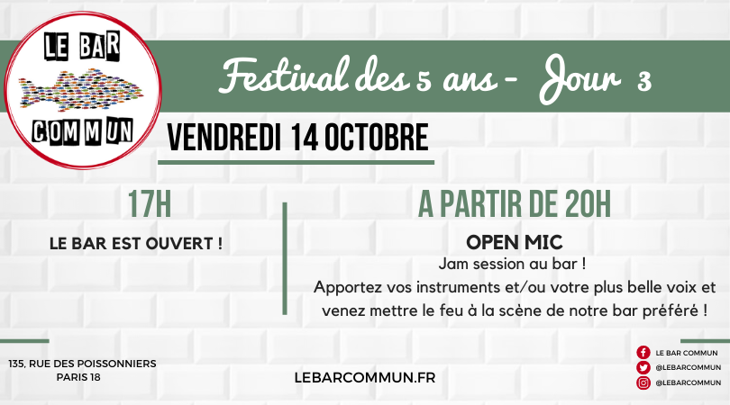 Le miroir de votre salle de bain en a marre de vous entendre chanter du Katy Perry à tu-tête ? Ça tombe bien, la scène du Bar Commun s’ouvre au monde. Nous serons plus que ravis de vous écouter pousser la chansonnette et gratter votre instrument à corde préféré, car rien de plus commun qu’une mélodie à partager ensemble.