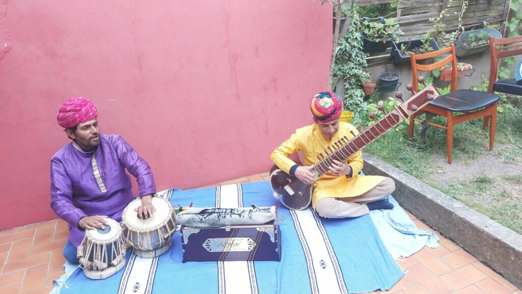 Kerap, Gypsies of Rajasthan, est un groupe de musique traditionnelle indienne, avec un harmonium, des tablas, une sitar et une double flûte, accompagné d’un chanteur et d’une danseuse.