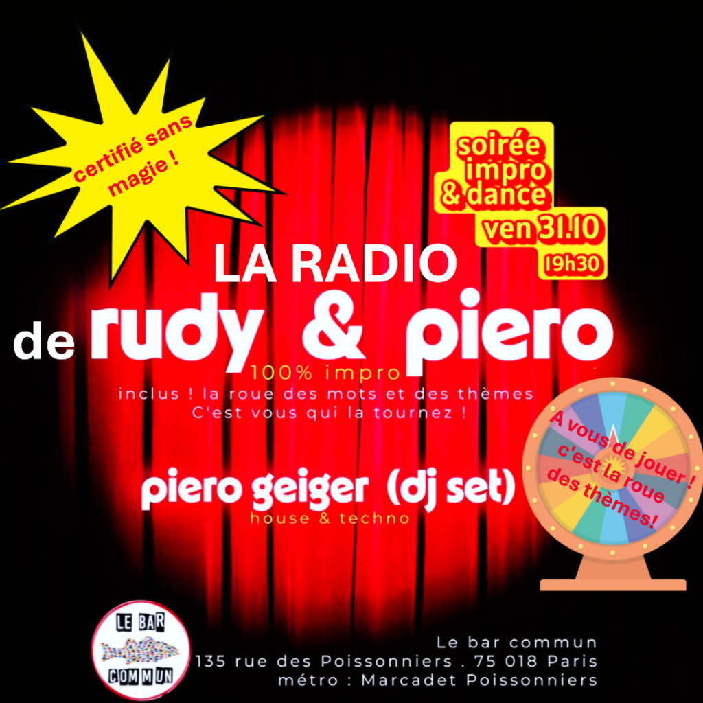 Tout est dans le titre : rudy et piero pour une session d’impro. Inclus ! la célèbre roue des thèmes… vous pourrez la faire tourner, pour lancer des Radio Show des plus originaux.