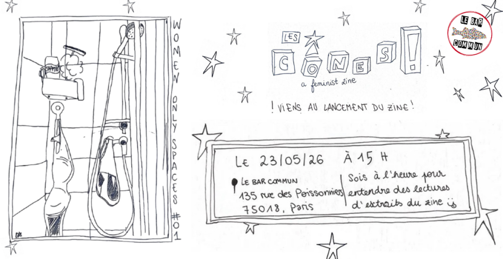 Les Cônes ! vous invitent à assister au lancement du premier numéro de notre zine féministe. Au programme : des lectures du premier numéro, « Women Only Spaces », un peu de divertissement et des échanges conviviaux. Mais surtout, la mise en valeur de l’association Du Pain et des Roses, qui accompagne des femmes en situation de précarité et les forme au métier de fleuriste.
