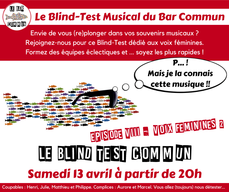 Le Blind-Test musical du Bar Commun revient samedi 13 avril à partir de 20h pour un nouvel épisode consacré aux voix féminines..
