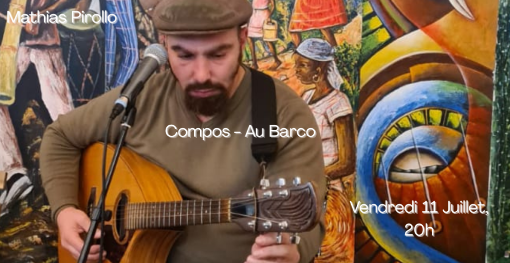 Vendredi 11 Juillet 20h, Mathias Pirollo vous chante ses compositions en guitare chant, si vous prêtez vos oreilles, vous y croiserez des employés de bureau qui veulent démissionner, un cheval qui se prend pour une constellation, une âme sensible…