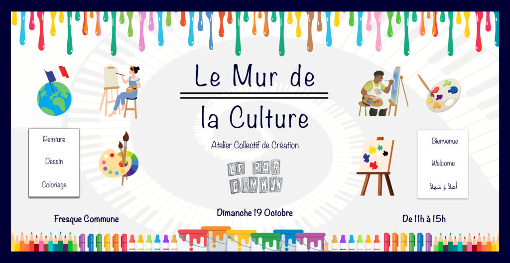 Première Édition du Mur de la Culture. Atelier Collectif de Création au Bar Commun.