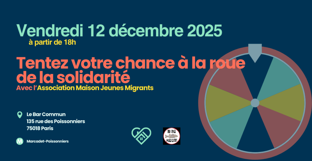 Des bénévoles de l’association Maison Jeunes Migrants seront présent.e.s au bar commun vendredi 12 décembre à partir de 18h pour vous faire découvrir nos actions et notre mission d’accompagnement de mineur.e.s non accompagné.e.s.