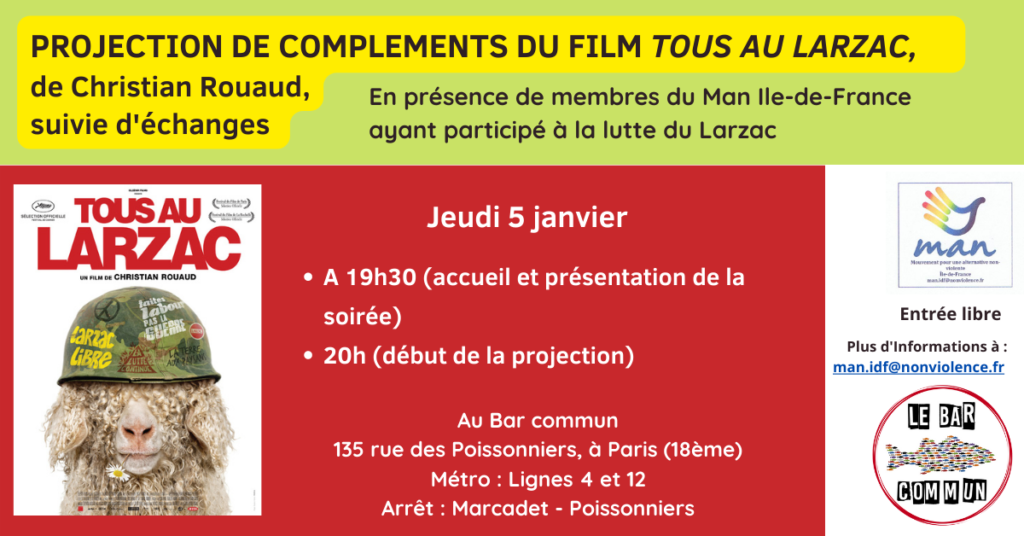 Le 27 octobre, le Man Ile-de-France a organisé aux Marmites volantes de Montreuil, une projection de ce film (durée : 1h58) suivie d’un temps d’échanges (1h environ).