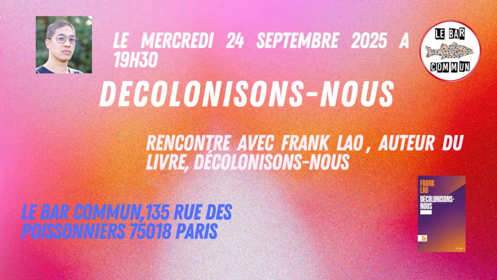 Frank Lao viendra nous présenter son ouvrage « Décolonisons-nous ».