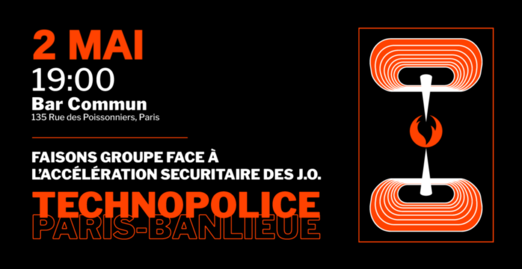De nombreuses expérimentations technologiques auront lieu pendant les Jeux mais aussi dans les transports en commun et dans différents événements sportifs et culturels. Ce groupe a vocation à travailler sur les conséquences des JO mais également au-delà, pour documenter, dénoncer et lutter contre l’implantation de technologies de surveillance dans Paris et sa banlieue.