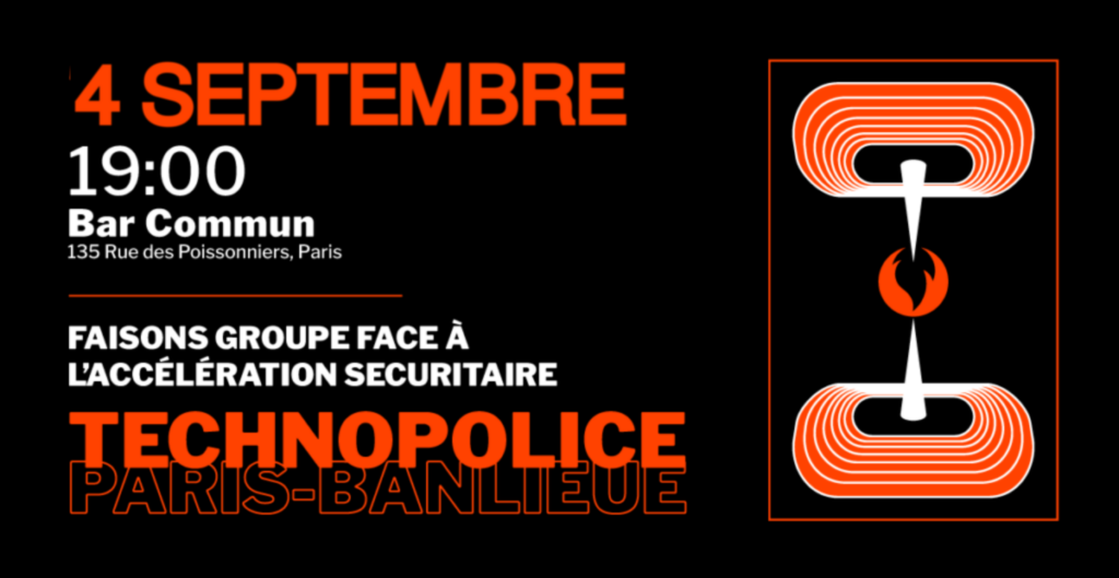 Si vous souhaitez participer au travail de documentation, de visibilisation et de mobilisation, venez discuter avec le groupe Technopolice Paris-Banlieue à l’occasion du rendez vous mensuel qui a lieu en septembre le mercredi 4 à partir de 19h au Bar Commun.
