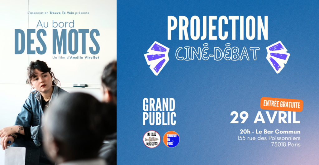 Projection-débat autour du documentaire « Au bord des mots », un film qui donne à entendre la voix des jeunes et leurs réalités. La séance sera suivie d’un échange avec la réalisatrice Amélie Virollet et la responsable de production Laura Alarcon, autour de la place de la parole des jeunes dans notre société, de ses enjeux et des moyens de mieux l’écouter et la valoriser.
