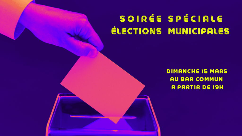 Pour le premier tour des municipales, on se retrouve pour suivre ensemble les résultats. Une soirée citoyenne pour analyser autour d’un verre les tendances qui se dessinent dans nos communes. Aux urnes citoyens citoyennes et rendez-vous le 15 mars au Barco !