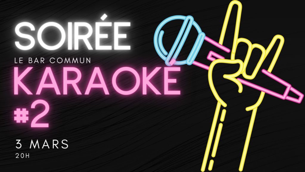 Vous l’attendiez ? c’est le grand retour du Karaoké du bar commun. Choisis tes chansons préférées, le micro t’attend, toi et tes ami.es, pour mettre le feu ! On vous espère nombreux comme d’habitude pour chanter en chœur. Préparez vos voix…et vos oreilles !