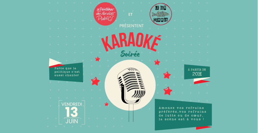 A l’occasion du Printemps des Services Publics, le collectif Nos Services Publics et le Bar Commun s’associent pour une soirée Karaoké inoubliable !