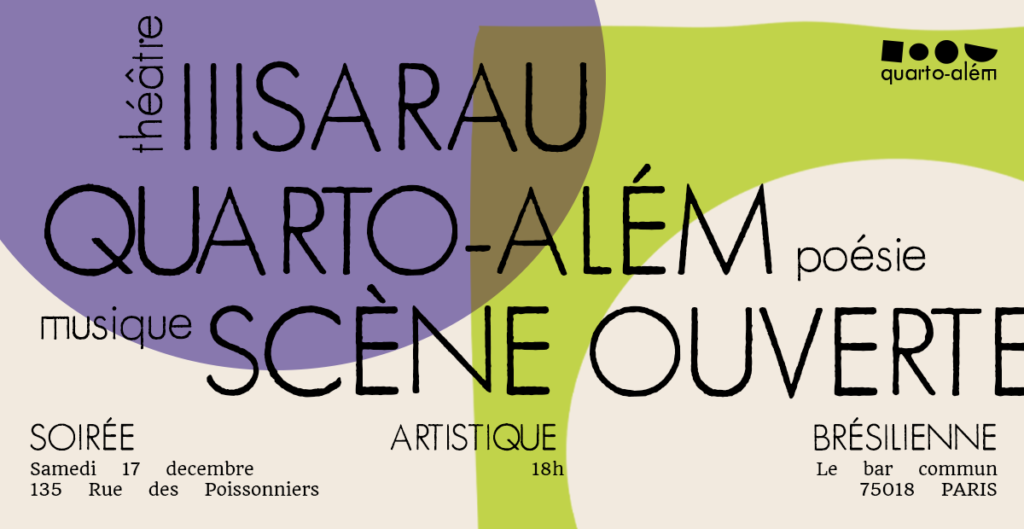 Est-ce une soirée brésilienne? Oui, mais ce n’est pas une soirée destinée uniquement à un public brésilien ou lusophone, au contraire ! La scène est ouverte à des lectures et propositions dans n’importe quelle langue 🙂